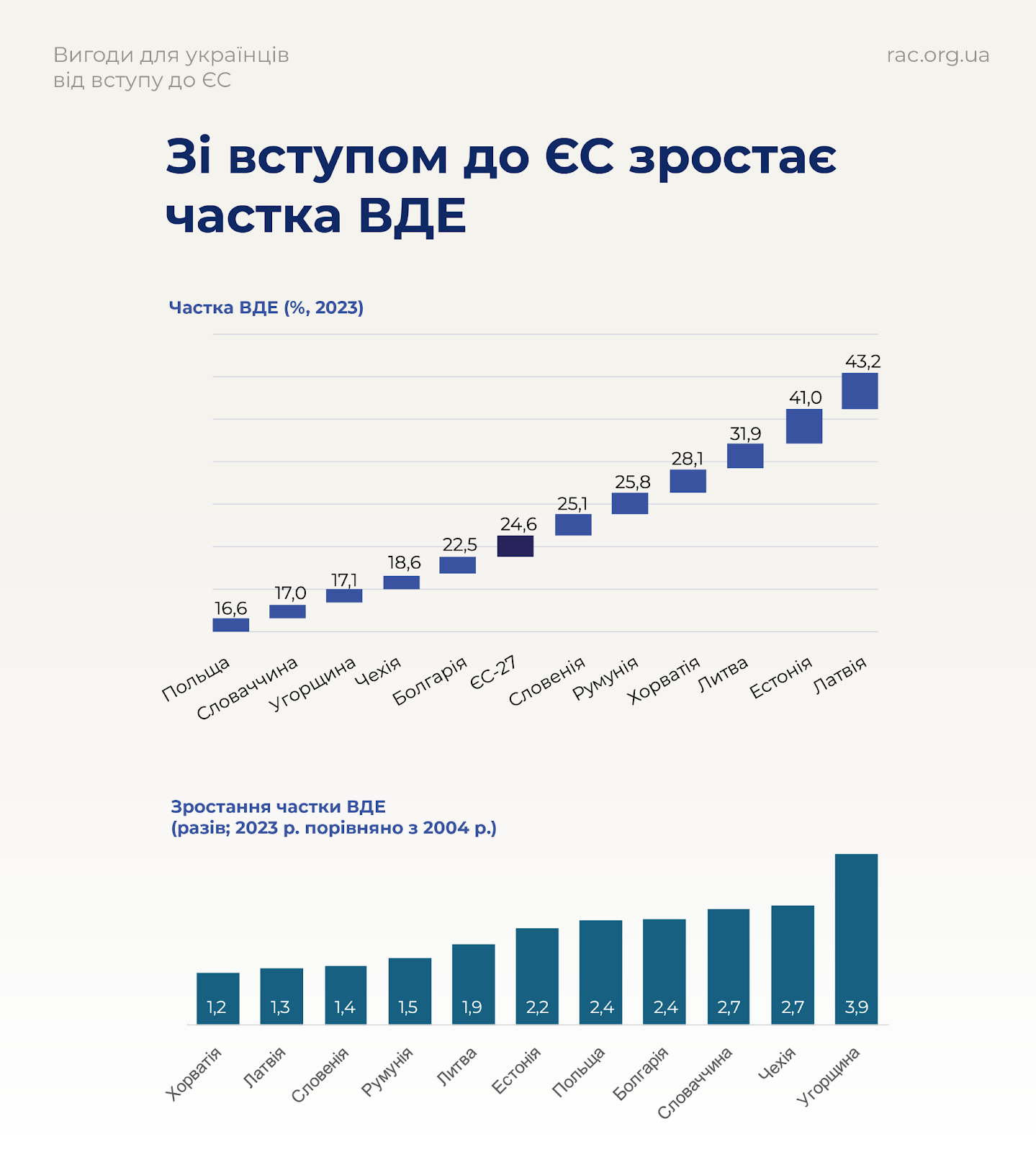 Щоб зрозуміти, як вступ до ЄС може вплинути на життя кожного українця, команда Ресурсно-аналітичного центру “Суспільство і довкілля” вивчила досвід країн, які останніми приєдналися до Європейського Союзу.